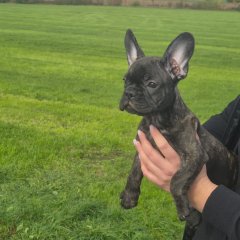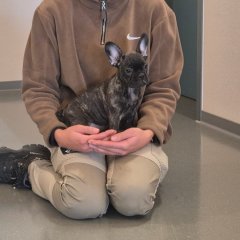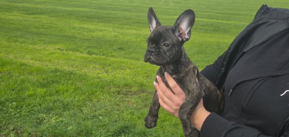 Die kleine französische Bulldogge ist welpentypisch verspielt, neugierig und aufgeschlossen gegenüber uns Menschen.