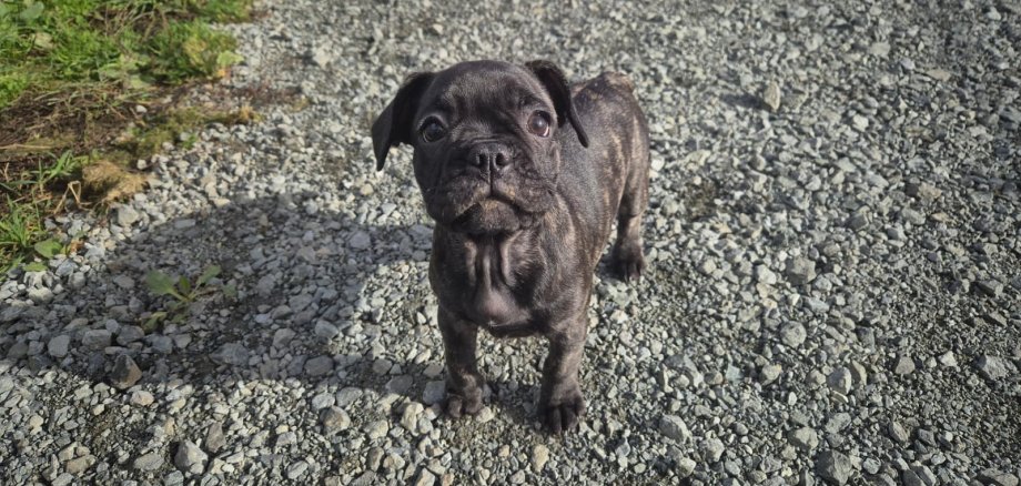 Die kleine französische Bulldogge ist welpentypisch verspielt, neugierig und aufgeschlossen gegenüber uns Menschen.