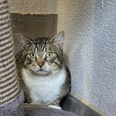 Unser hübscher Hironimus zeigt sich immernoch sehr schüchtern und zurückhaltend. Er beobachtet den Tierheimtrubel gerne aus einem sicheren Versteck. Es fällt ihm noch sichtlich schwer auf uns Menschen und unsere Kontaktaufnahme einzugehen.