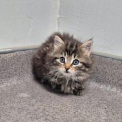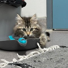 Sie zeigt sich aktuell noch etwas skeptisch gegenüber uns Menschen und beobachtet gerne aus dem sicheren Hintergrund. Man sieht ihr die Neugier schon an und erkennt, wie süß und selbstbewusst sie mit ihren Geschwistern agiert.