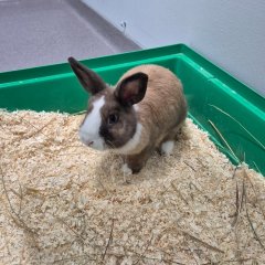 Der 9 Monate alte kastrierte Elmo liebt abwechslungsreiches Frischfutter und jede Menge Platz im Haken zu schlagen.