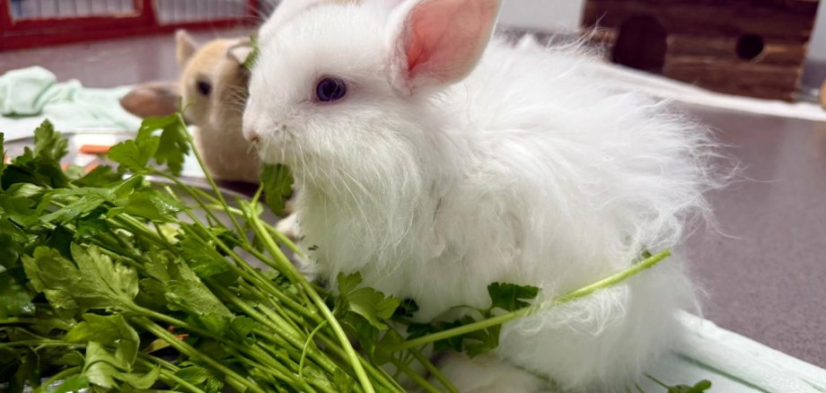 Snow zeigt sich aufgeschlossen und neugierig. Er ist abwechslungsreiches Frischfutter gewöhnt.