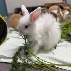 Bei uns lebt er aktuell in Innenhaltung. Aufgrund seiner Rasse, wäre eine Außenhaltung im Winter ungeeignet, da Angora (Mix) Kaninchen keinerlei Unterwolle haben und bei Nässe und Kälte sehr gefährdet sind.