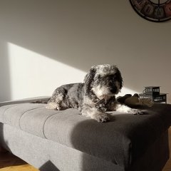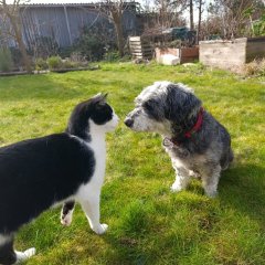 Auch Menschen liebt Aron sehr, vor allem ältere Menschen und Kinder. Generell ist er sehr menschenbezogen und absolut unkompliziert mit Besuch oder Begegnungen.