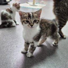 Er ist kittentypisch verspielt, neugierig und verschmust. Er tapst schon selbstbewusst und aufgeschlossen umher.