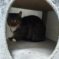 Unser hübscher Divo kam mit zwei Joschi und Schmusi zu uns ins Tierheim. Er gehört aktuell noch zu der skeptischen Sorte und beobachtet das Geschehen lieber aus sicherer Entfernung. Das Knistern von den Leckerlis lässt ihn jedoch schon etwas neugieriger werden, sodass er gerne mal aus seinem Versteck kommt und guckt, was es zu holen gibt.