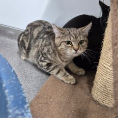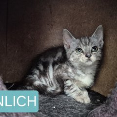 Er ist kittentypisch verspielt und liebt es mit seinen Geschwistern zu toben. Auch das Kuscheln darf nicht zu kurz kommen, was er am liebsten in einer gemütlichen kleinen Höhle macht.