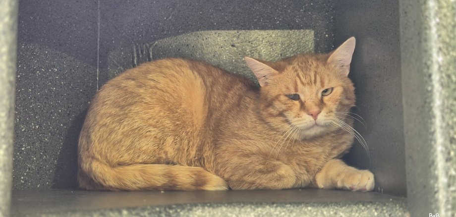 Der stressige Alltag im Tierheim scheint dem stattlichen Kater etwas viel zu sein, denn er zieht sich meistens in seinen Lieblingskratzbaum zurück und döst vor sich hin.