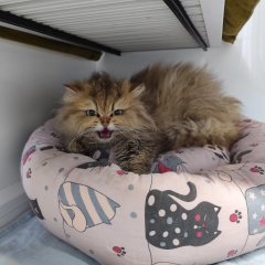 Bei uns im Tierheim hat sie sich mit ihrer Zimmernachbarin Betty angefreundet. Beide haben gemeinsam ihre und auch Fundkitten großgezogen und gemeinschaftlich wunderbar sozialisiert.