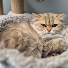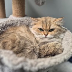 Rosi schaut uns gerne etwas grimmig an und begegnet uns Menschen manchmal etwas skeptisch. Grundsätzlich ist sie aber eine ganz liebe Kätzin, die uns Menschen und unsere Streicheleinheiten ziemlich gerne hat.