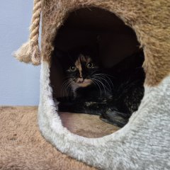 Shila² kam mit 9 weiteren Katzen aus einem befreundeten Tierheim zu uns. Da das Katzenhaus dort überfüllt ist, konnten wir glücklicherweise helfen und 10 Fellnasen aufnehmen.