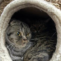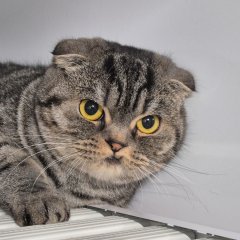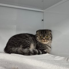 Aktuell ist sie noch etwas überfordert mit der Situation, weswegen sie sich in ihre Höhle zurückzieht. Sima hat uns genau im Blick und sucht noch nicht wirklich den Kontakt. Sie traut uns noch nicht so richtig, weswegen einfühlsame und ruhige Menschen genau das richtige für unsere Scottish Fold BKH Mischlingsdame ist.