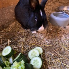 Aktuell lebt Snippet bei uns in Innenhaltung sowie Außenhaltung und ist abwechslungsreiches Grünfutter sowie Gemüse gewöhnt.