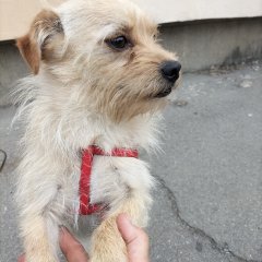 Der arme kleine Bobby lebte ungefähr 3 Monate lang auf einer Müllkippe in Rumänien. Ausgesetzt und seinem Schicksal überlassen grenzt es an ein Wunder, dass der kleine Kerl so lange draußen überlebt hat, zumal direkt neben der Müllkippe die Bahngleise verlaufen. Eine Tierschützerin kam jeden Tag und brachte ihm Futter und Wasser, doch anfassen ließ er sich nicht. Zu groß war seine Angst mittlerweile geworden. Doch irgendwann fing er an der Frau , die ihn jeden Tag besuchte und Futter mitbrachte, zu vertrauen. Sie konnte ihn endlich sichern und nahm ihn mit nach Hause.