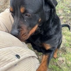 Hera hat in einer Stresssituation bereits zugeschnappt, als sie am Halsband festgehalten wurde. Es gab keine behördlichen Auflagen, dennoch sollte sie in erfahrene Hände vermittelt werden – idealerweise zu jemandem mit Rottweiler- oder Gebrauchshunderfahrung, der souverän und ruhig mit ihr umgehen kann.
