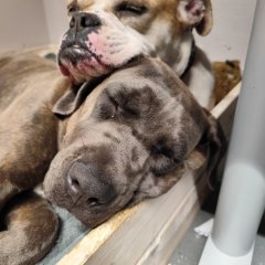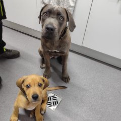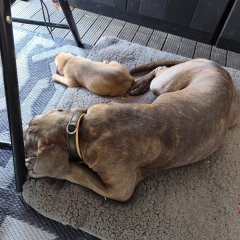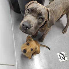 Derzeit lebt sie mit anderen Hunden, Kindern und Katzen zusammen.