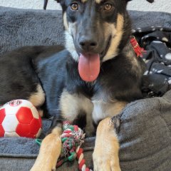 - Liebt Suchspiele, Bälle, Stofftiere
