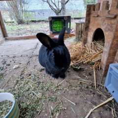 Mütze sucht ein neues artgerechtes Zuhause, mit einer freundlichen Partnerin. Er ist von Natur aus ein wenig schüchtern, baut aber schnell Vertrauen auf. Mütze ist an Teenager und Erwachsene aber nicht an Kinder gewöhnt. Er lebt derzeit in Außenhaltung, frisst gerne frisches Gras, Gemüse, aber auch Trockenfutter.
