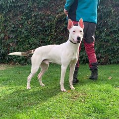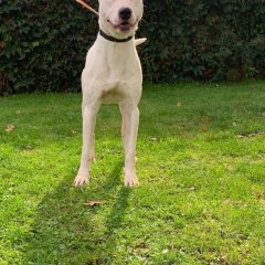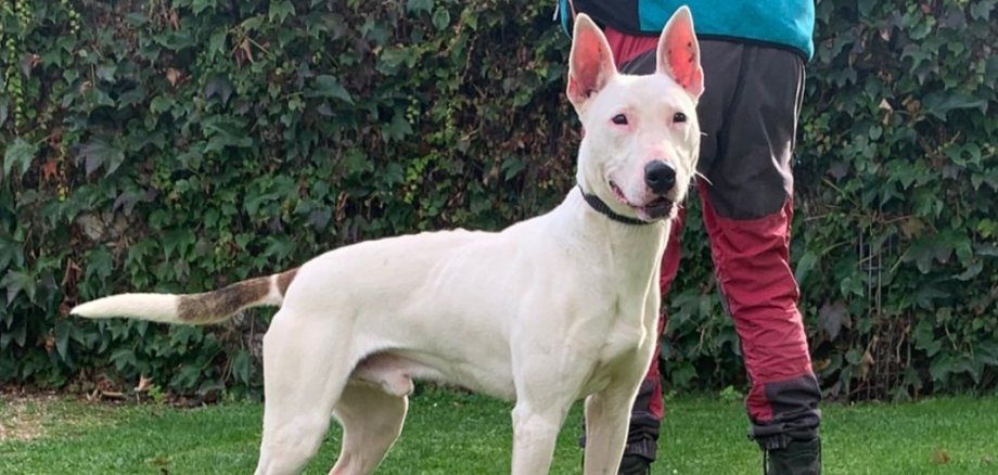 Titus ist ein ca. 2,5 Jahre alter Dogo Argentino-Schäferhund-Mix und ein sehr aktiver, temperamentvoller Rüde, den man nur als "Spring-ins-Land" beschreiben kann. In seinem vorherigen Leben hat er noch nicht viel kennengelernt und muss erstmal das Hunde 1x1 lernen. Er ist sehr lebhaft, findet nur schwer zur Ruhe, bellt gerne und provoziert andere Hunde, weshalb er lieber Einzelhund werden sollte. Dabei zeigt er keine Aggressivität, aber es ist deutlich, dass er mit anderen Hunden in seiner Welpen- und Junghundephase nicht sozialisiert wurde.