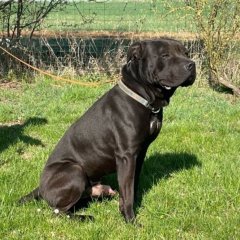 Tyson ist ca. 4 Jahre alt und gehört aufgrund seiner Rasse (Cane Corso-Pit Bull Mix) zu den Listen-hunden in Rheinland-Pfalz. Die anfängliche Aggression, die er bei seiner Beschlagnahmung gezeigt hat, hat er vollständig abgelegt. Heute zeigt sich er sich sehr freundlich - sowohl uns Menschen gegenüber als auch gegenüber anderen Hunden.